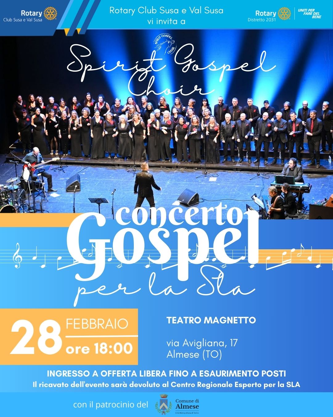 Concerto Gospel per la SLA sabato 28 febbraio alle ore 18:00 al Teatro Magnetto di Almese.