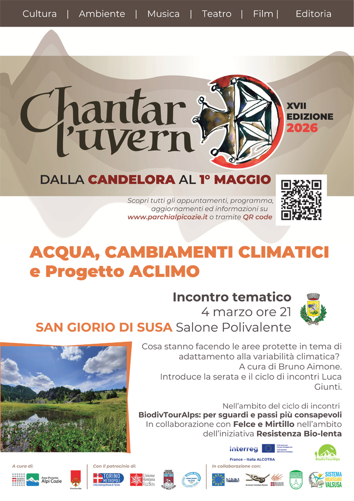 Acqua, Cambiamenti climatici e AClimo - progetto trasfrontaliero. Cosa stanno facendo le aree protette in tema di adattamento alla variabilità climatica. A cura di Bruno Aimone.
