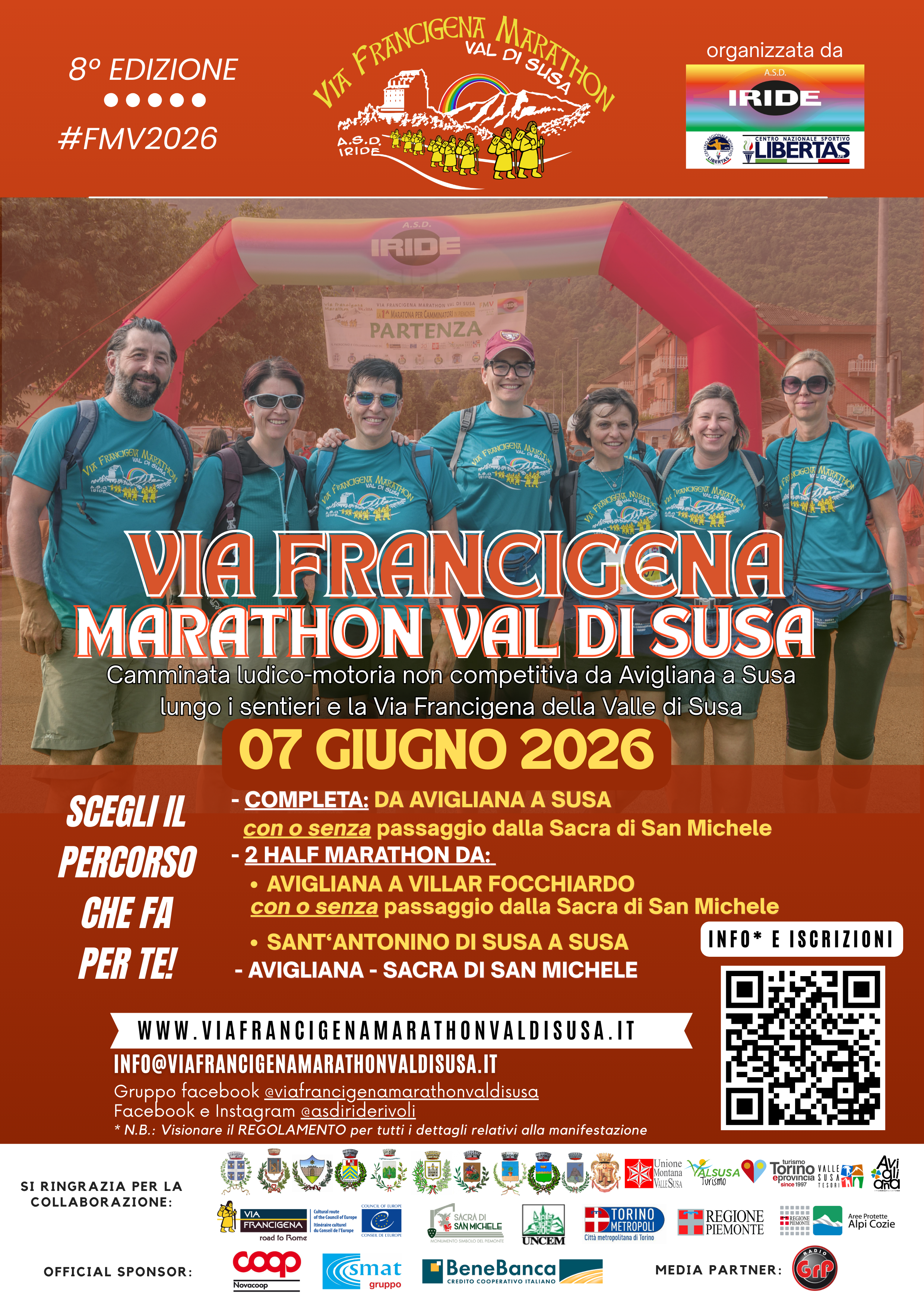 Anche quest’anno l’ASD IRIDE di Rivoli sta lavorando per l’organizzazione della Maratona lungo la via Francigena Piemontese, che partendo da Avigliana arriverà a Susa percorrendo i punti più caratteristici della Valle di Susa, con il passaggio dlla Sacra di San Michele attraverso il suggestivo Sentiero dei Principi.I percorsi proposti quest’anno sono: